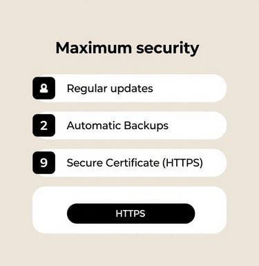 Mises à jour régulières, sauvegardes automatiques et certificat sécurisé (HTTPS).